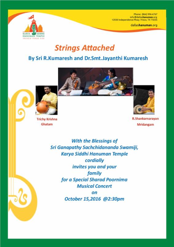 Sr. R Kumaresh, violin maestro, and Dr. Jayanthi Kumaresh, veena exponent, present a scintillating conversation of musical ideas through their wonderful stringed instruments. Duo will present a combined expression of togetherness and classicism for a special Sharad Purnima musical concert on Oct. 15 at 2:30pm.
