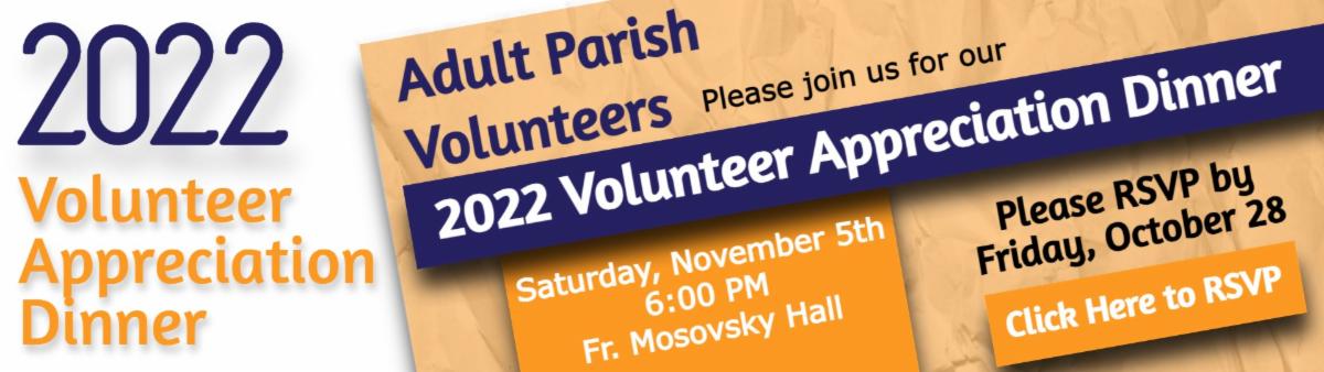 If you are currently or have been a parish volunteer in the past two years and would like to attend the Volunteer Dinner, please RSVP on the website or via the link below.