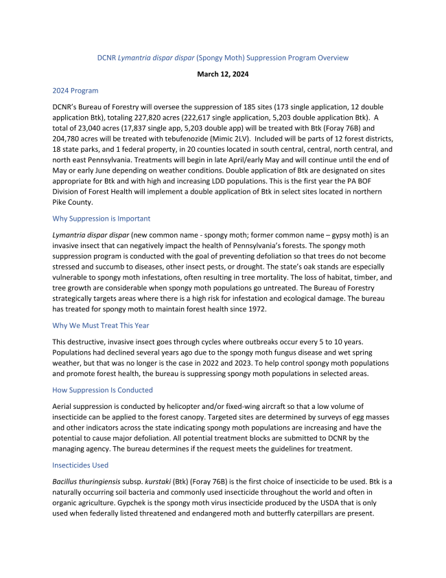 We wanted to take a moment to inform you about an upcoming activity that will be taking place in our community. As you may be aware, the presence of Spongy Moths (Lymantria dispar dispar) has become a concern in our area, and it is necessary to take proactive measures to control their population.