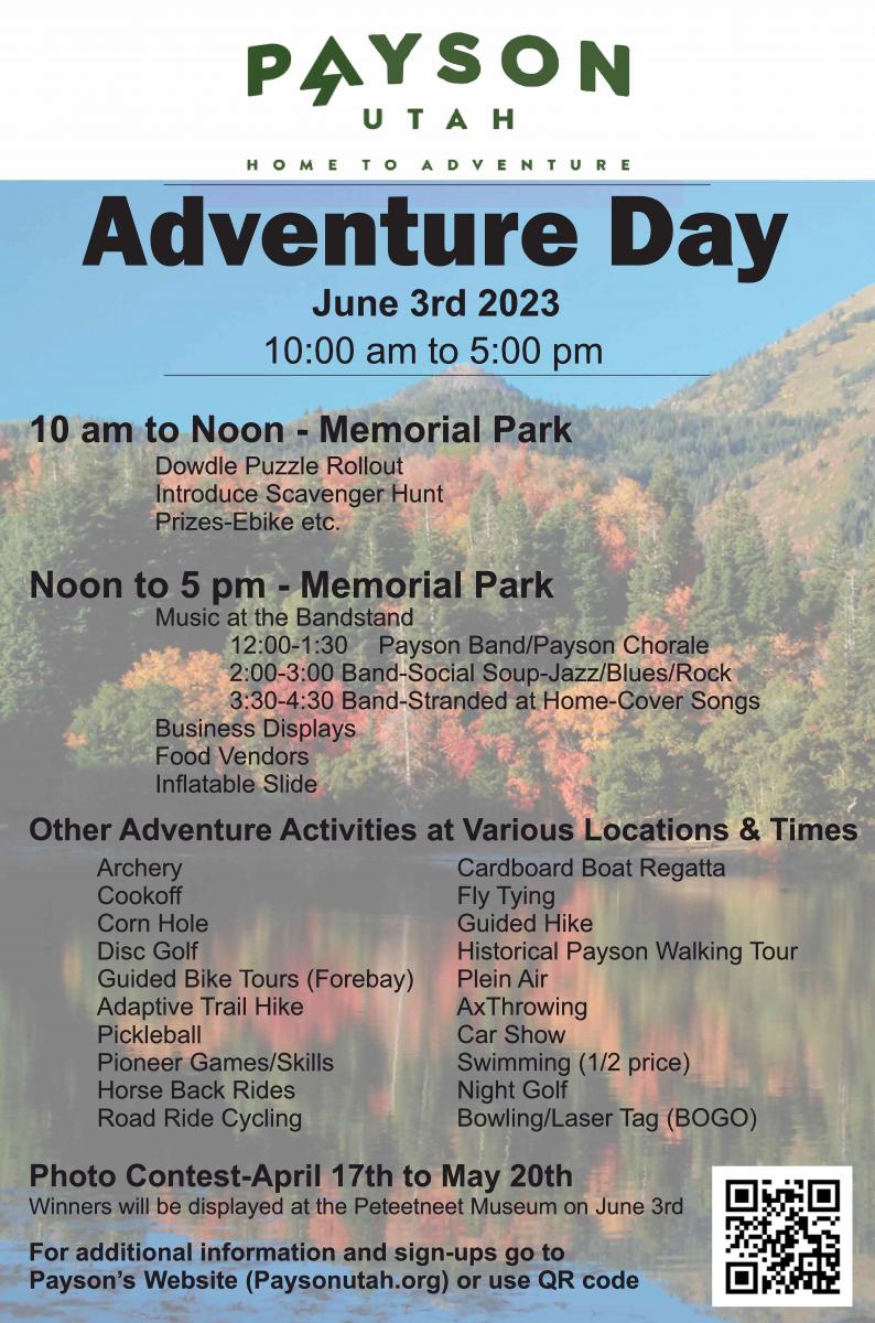 This is Payson's first annual Adventure Day event and it will be a day you won't want to miss!