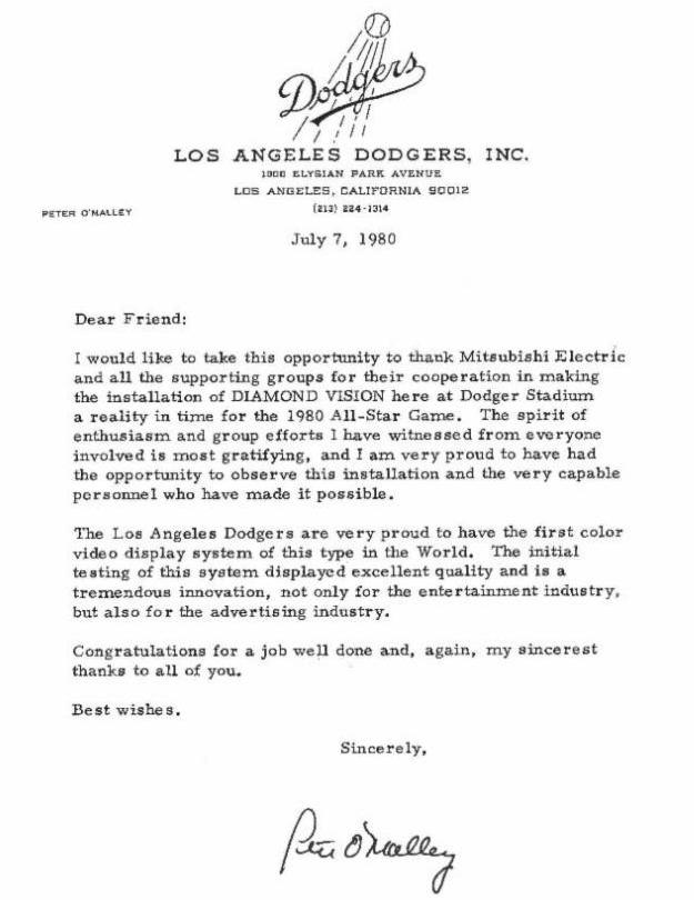 In 1979 Mitsubishi Electric of Japan developed a large outdoor video system they wanted to market in the United States. They came to Mikio for advice, hoping to introduce it at Yankee Stadium. The 1980 All Star baseball game was to be held at Dodgers Stadium, so Mikio asked Mitsubishi to bring the system to Los Angeles instead.