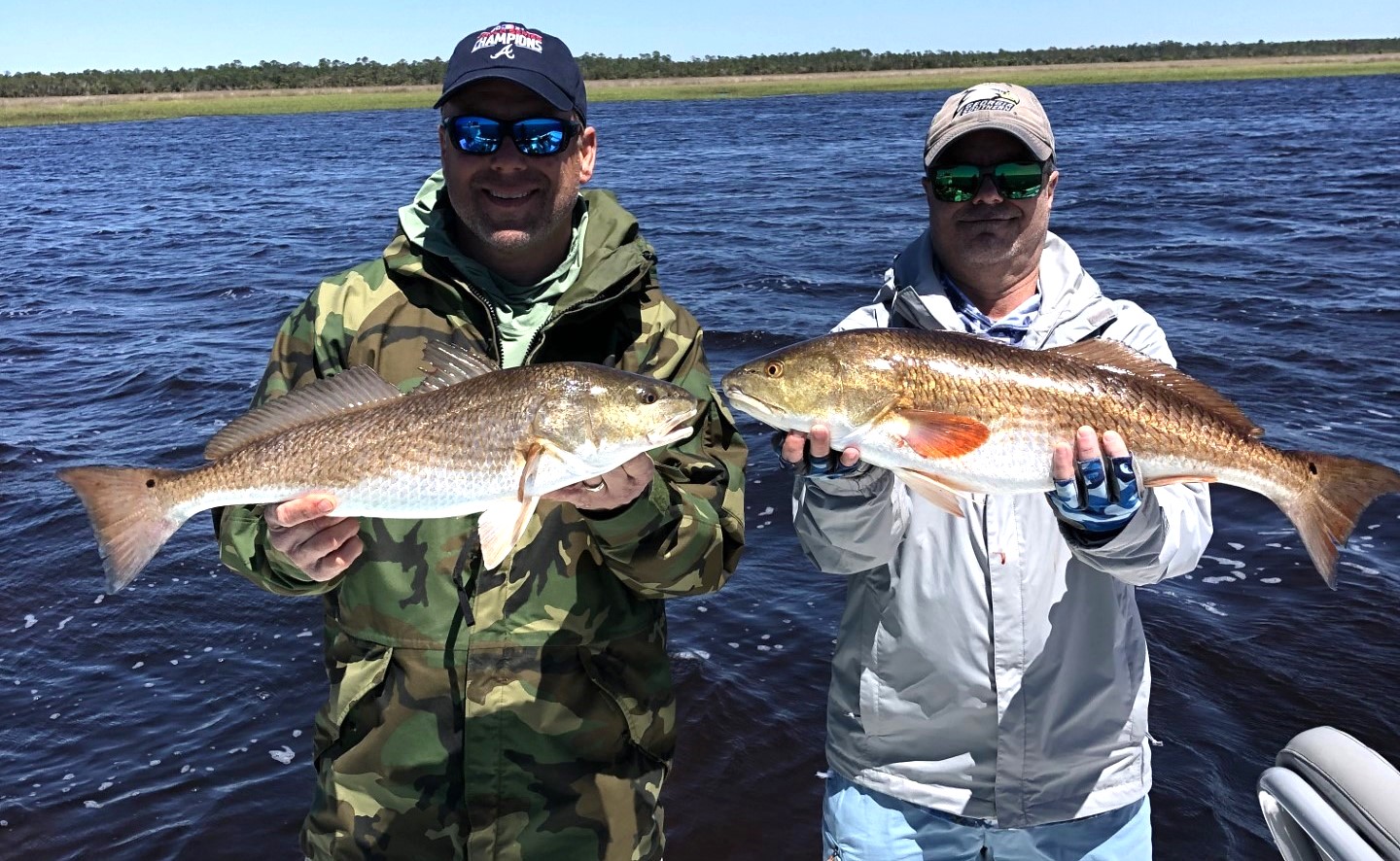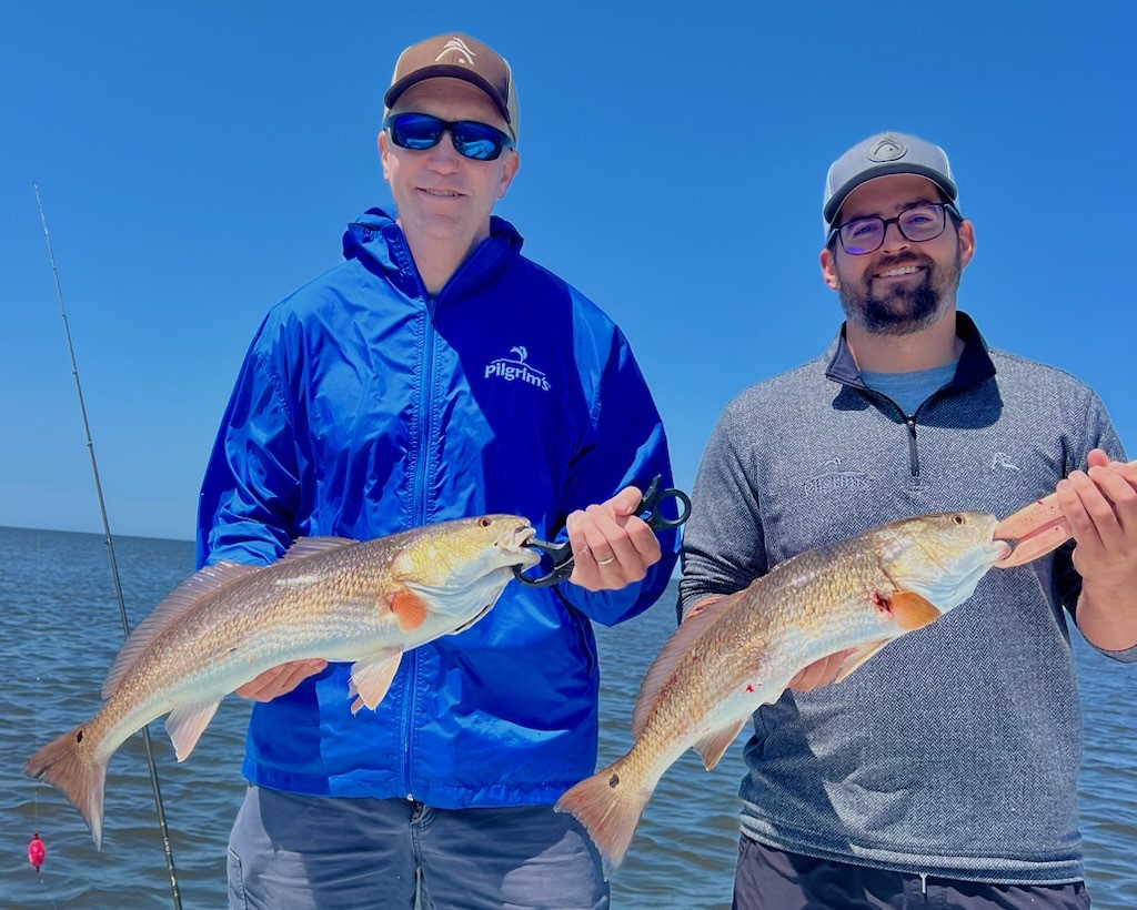Dan and Pete doubled-up on the redfish while fishing with Capt. Chris "Chico" Graham.