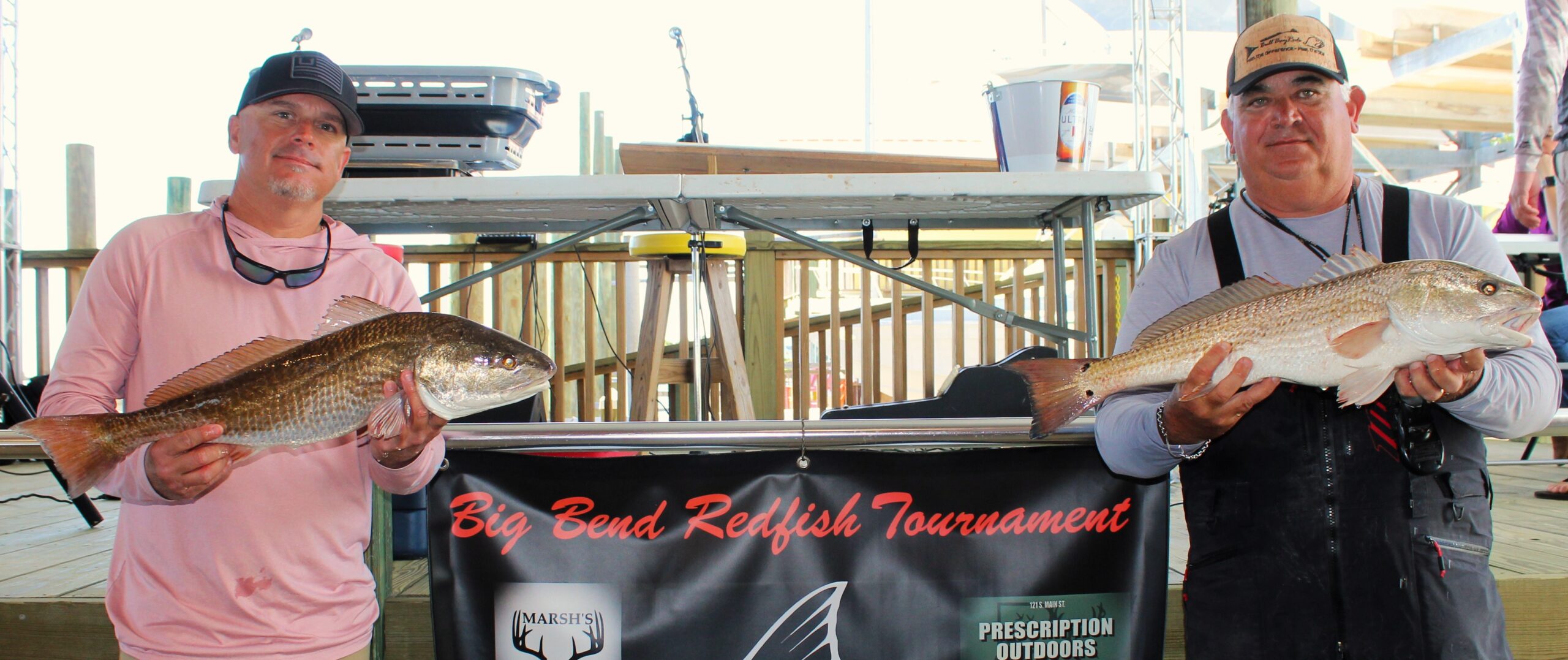 The Big Bend Redfish Tournament was hosted for the second time at Sea Hag and despite the windy weather, the turnout was great. Although the bite was tough, the participants brought in some awesome fish. All fish were weighed-in live and safely released after the tournament. Congratulations to the winners of the tournament Adam Ivey and Andy Phillips, with the combined weight of the two heaviest redfish totaling 13.62lbs they received winnings of $1,100. Andy Phillips won the overall heaviest redfish weighing 7.25lbs and received $600. We would like to thank everyone who participated and made this tournament a success.