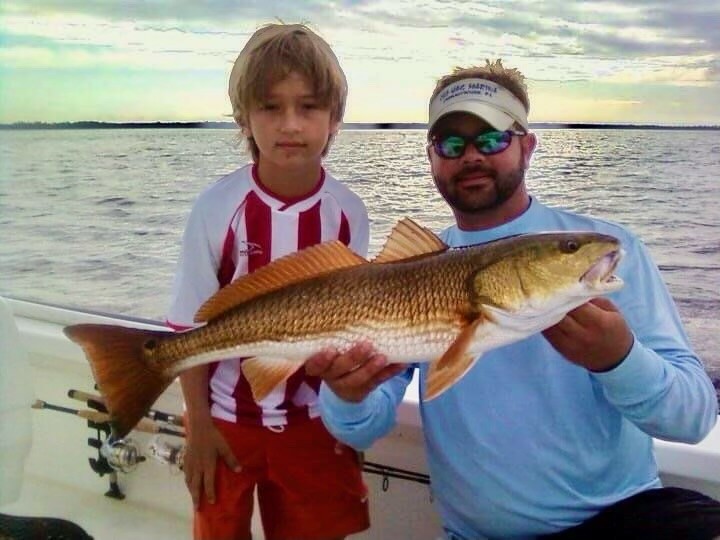 Cole is cheesing over this awesome redfish he caught while fishing with Capt. Chris "Chico" Graham.