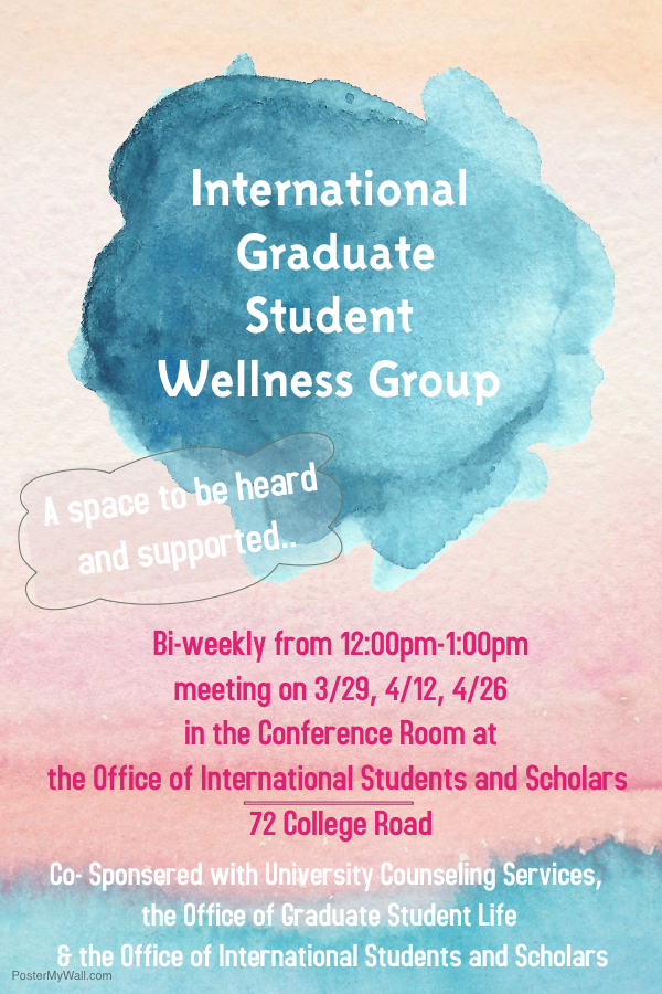 Our weekly discussion series for Graduate international students will continue this week from 1-2 pm at the Connors Family Learning Center in O'Neill Library.