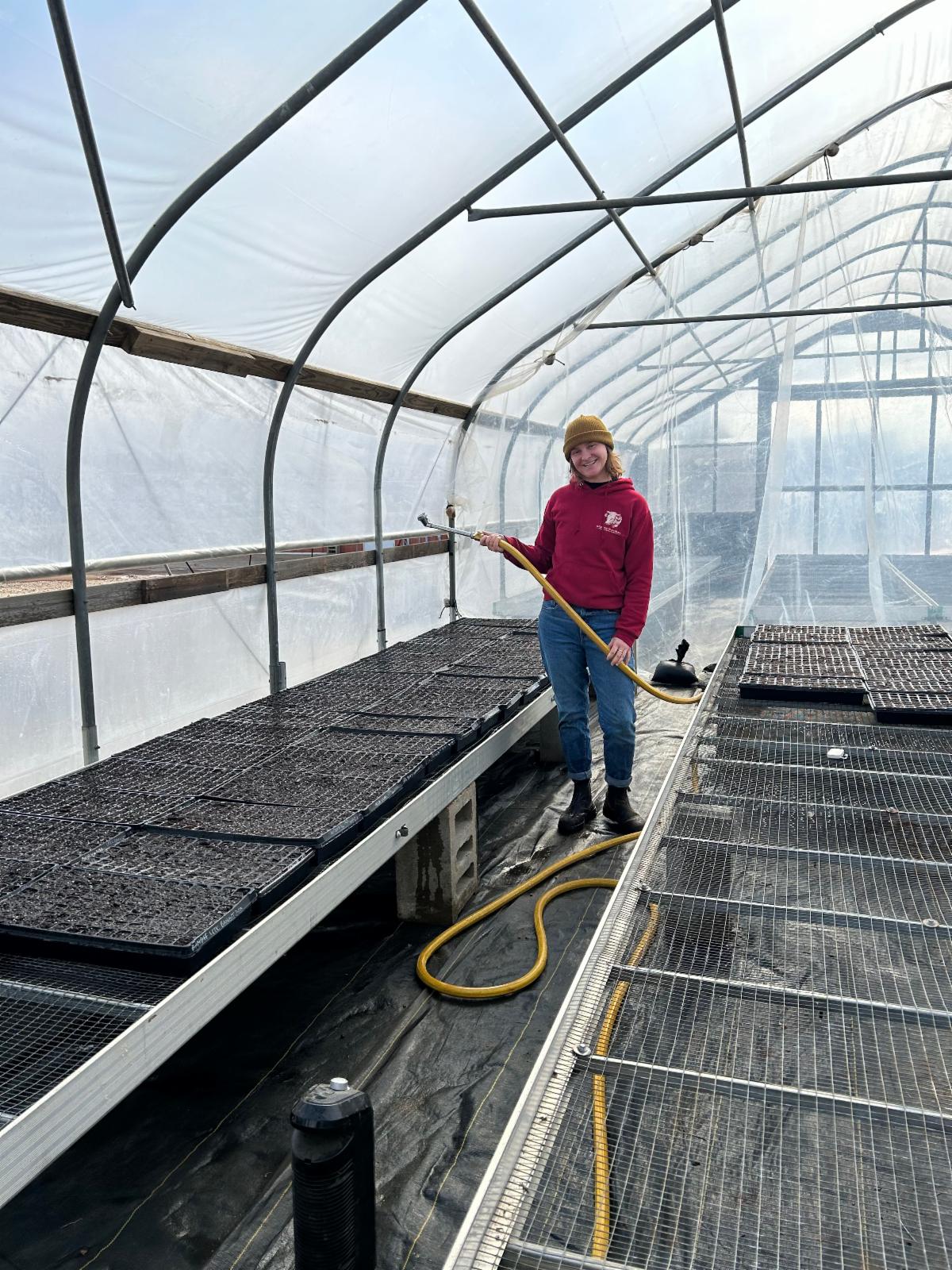 The indoor soil beds are bursting with greens such as spinach, kale, and arugula, thriving under the lengthening daylight hours. We've also kicked off the cultivation of tomato seedlings in the soil beds, with plans to transplant them within the coming month. Our field production has commenced, with onions, leeks, and celeriac recently seeded. Peas will go in soon. We're also gearing up to frost seed in some of our pasture spaces.