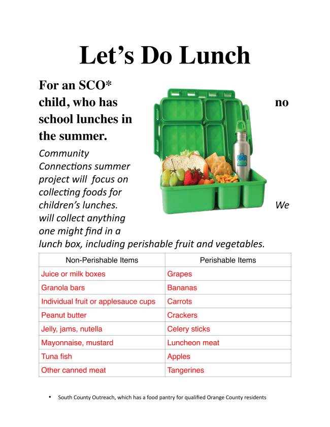 South County Outreach Food Pantry. Donations taken weekly. Financial contributions welcome. Visit website at: sco.org