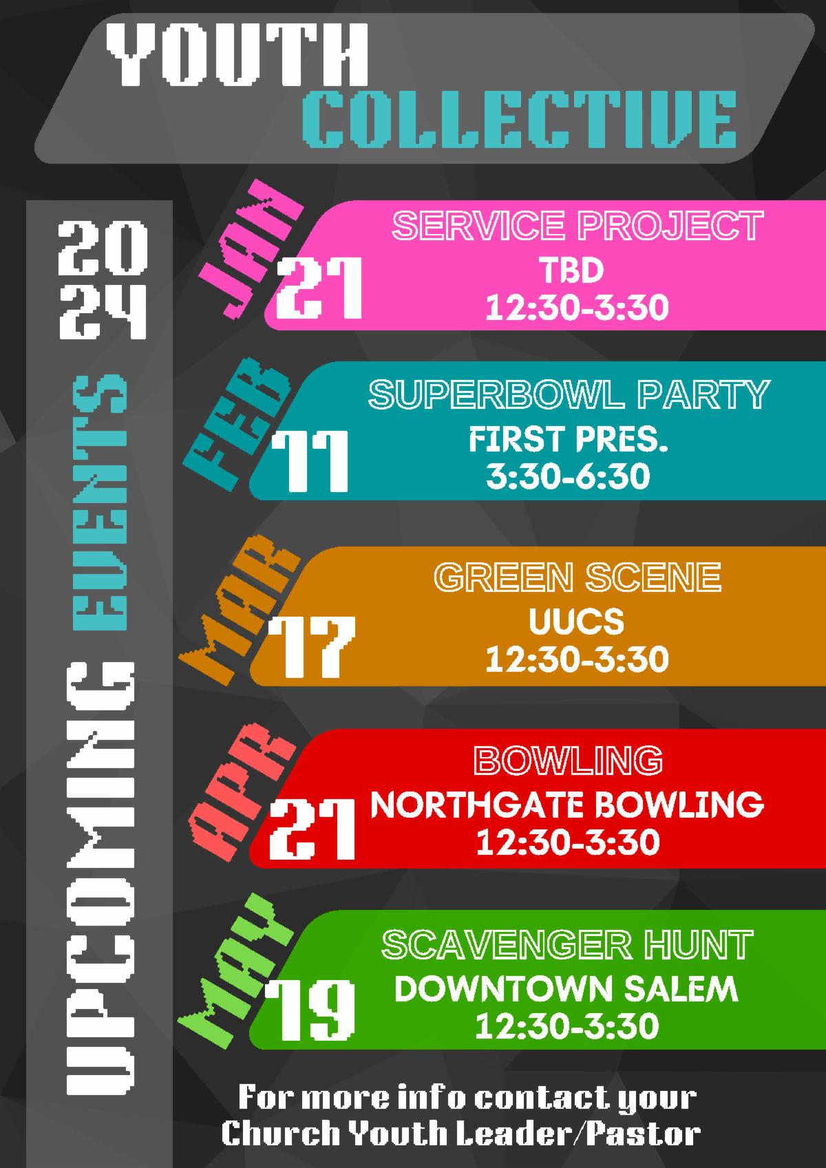 SPY will meet at 4:00pm on the second Sunday of each month beginning in October for fun, service projects and conversation about life and faith. Dinner will be at 5:00pm on those Sundays. Parents/guardians, please let me know if you can help provide a meal for one of those dinners. Thank you!