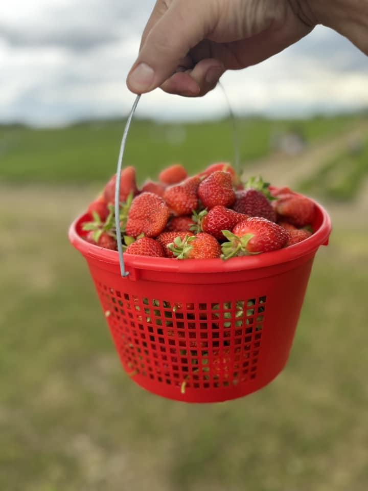 We expect to have strawberries available for picking for about 4 weeks. Everything is weather dependent and can change rapidly. We recommend you come to the farm while the picking is plentiful!