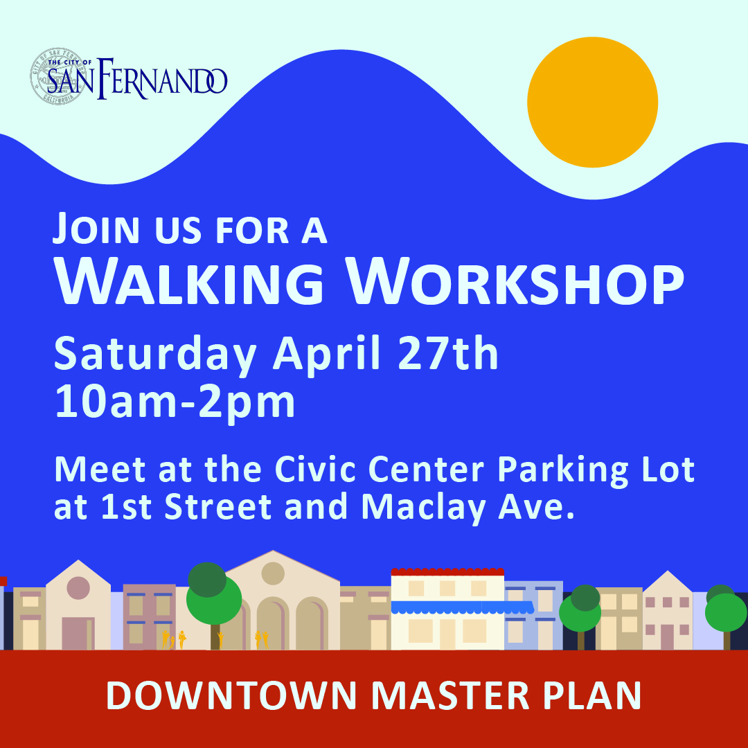 Join the City for a Walking Workshop to explore, and discuss Downtown San Fernando – an opportunity for you to share your first-hand impressions, issues, concerns, and ideas for its future! This event is free and open to the public.
