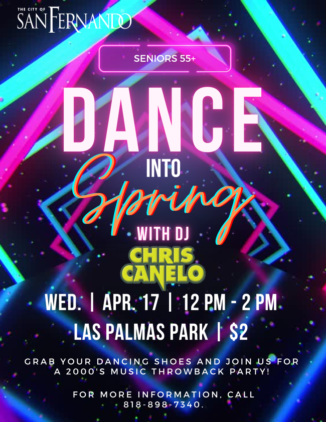 Kick off springtime with a throwback dance party featuring the hottest hits from the 2000’s! Las Palmas Park will be hosting this event for senior 55+ with sounds provided by the talented DJ Chris Canelo.