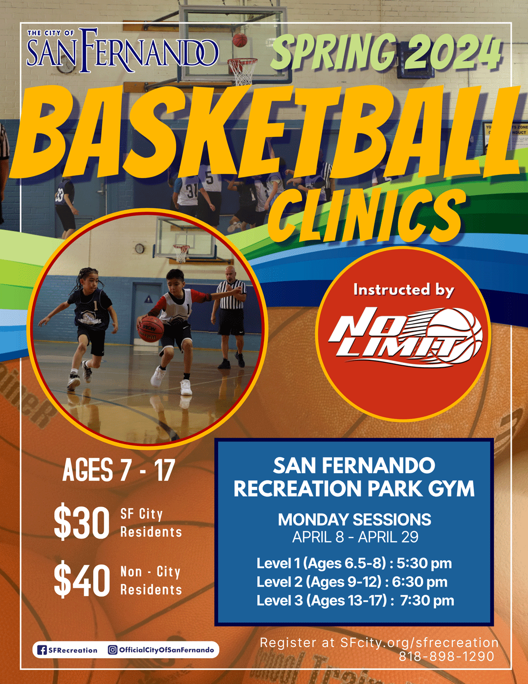 These clinics offer off-season training and conditioning to help youth ages 7 to 17 sharpen their skills, get better at the game and keep youth engaged and focused on the sport. Sessions will be held at San Fernando Recreation Park on Mondays, during April 2024.