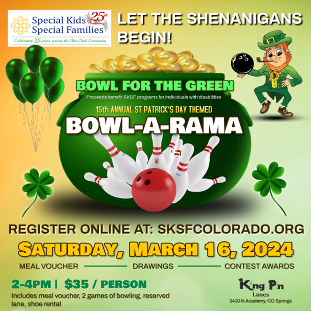If you’d like to participate, reserve your lane TODAY & register online for SKSF’s15th Annual Bowl-A-Rama event! This “Bowl for the Green” event is a fun St. Patrick’s themed fundraiser that everyone looks forward to every year held on Saturday, 3/16/24!