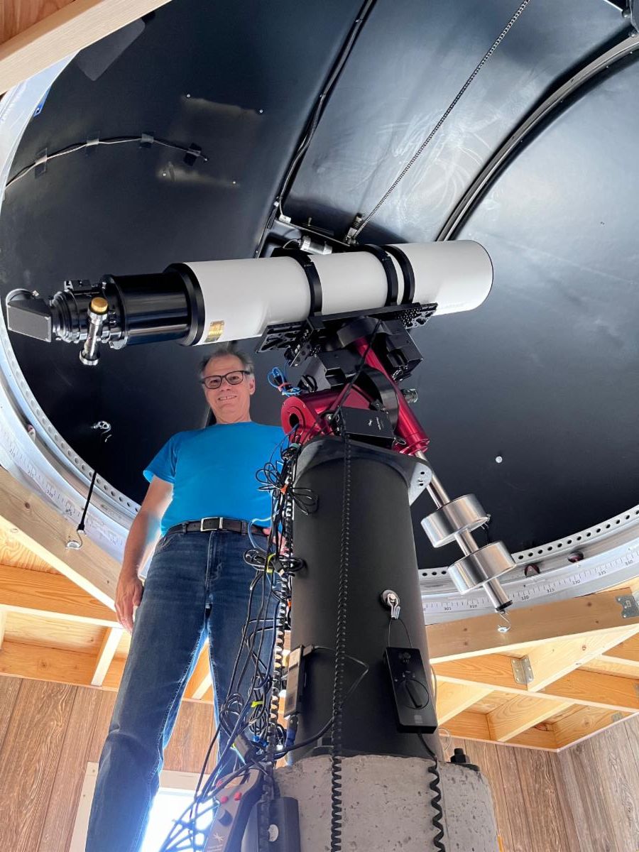 Barry grew up in northern Virginia in the 1960s. He shared his memory of reading a picture book on the planets in 2nd grade, which he would choose over and over again from the bookshelf in the classroom. Also, Barry’s family subscribed to the Time-Life Science Library of books and two of his favorites were “Planets” and “The Universe.” His first telescope was a 3” Newtonian reflector with cardboard tube from Toys ‘R’ Us in 1969 which allowed him to see the craters on the moon. “This inspired me to save up my paper route money for a 3” equatorial refractor from Sears which arrived shortly before the solar eclipse of March 7, 1970. This telescope allowed me to see Mars, Jupiter and its moons, the rings of Saturn, and the brighter nebula, despite my suburban skies.” Barry followed this telescope up with an 8” Newtonian in high school, an orange-tube C8 in college, a 10” LX200, a C14 Edge, and most recently, a Stellarvue SVX180T refractor.