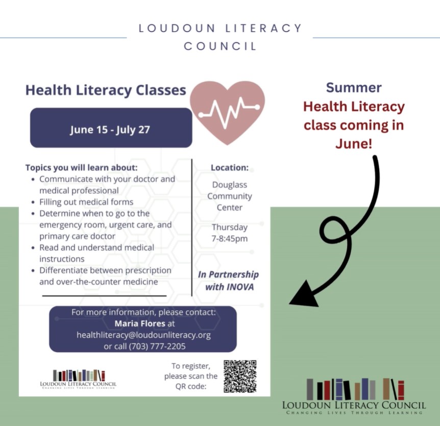 FREE Health Literacy Classes with the Loudoun Literacy Council are coming back this summer!