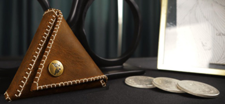 Switching Tripurse is an triangle shape of purse with brown texture combine retro copper button full of old-fashioned and US western cowboy style.