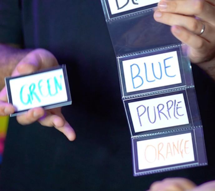 The gimmick does all the work for you, there is no chance you could fail during the performance. The cards have been constructed with whiteboard foil, so you can customize the cards as many times as you want!