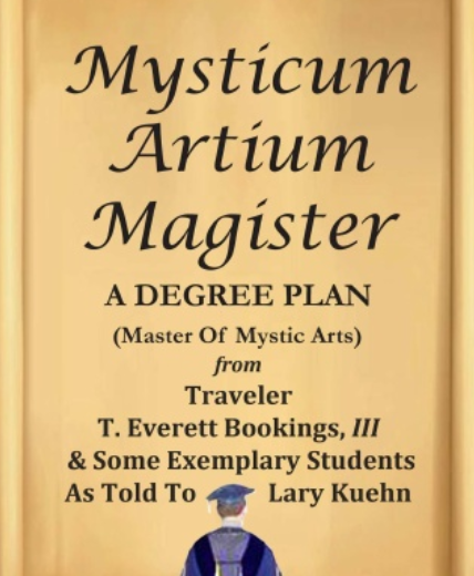 Finally Traveler has completed his new book. Just imagine, he taught a graduate level class to some real students. And, they all received the coveted Graduate Degree of Mysticum Artium Magister (Master Of Mystic Arts) in séances. Yes, an actual class that outlines concisely the basics for creating and performing séances. The students even had to take a ‘final’. Here’s a quick quote from Neil Tobin’s foreword: “Lary and Traveler are following Eugene’s path. And in this book, they’ve set out a step-by-step course for designing your own, personalized theatrical seance experience. The bones are all there: potential effects, storytelling hints, overall structure, and even promotional angles. From there, they let loose more than a half dozen talented seance enthusiasts to follow their plan and share their “final exam” results — some of which are remarkably inventive. (How about a seance designed to take camping, free of elaborate props and Victorian trappings? It’s in there.)”