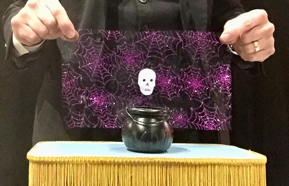 Conjure up a tiny animated spook from a witches’ caldron that floats about in a most mysterious manner. This little spook darts and dives, rises and falls, flips and flops much to the delight of your audience – the spook then retreats back to the dark caldron from whence he came.
