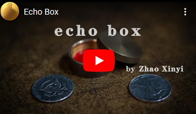 Either by itself or as Jiro suggest in conjunction with the Modern Coin Box above - this is a Stevens Magic Certified Quality product. Can you imagine? When a coin appears in the coin box or a coin is transferred into the coin box, you can hear that the coin passes through the lid and falls into the box. This is ECHO BOX.