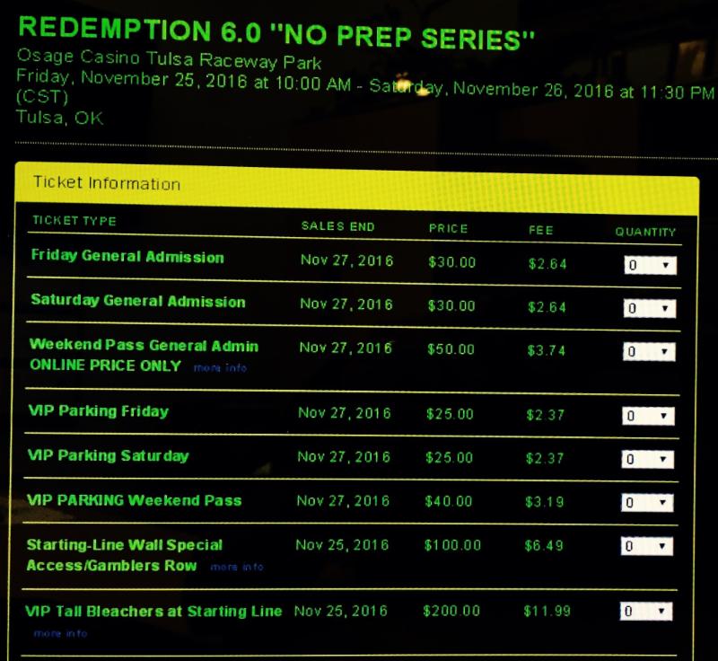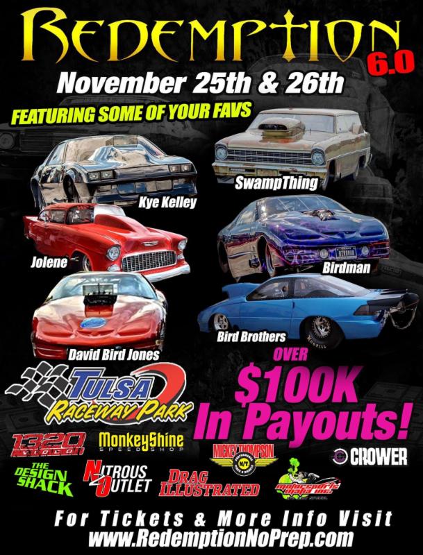 Osage Tulsa Raceway Park is proud to Present the famous Redemption 6.0 On The Road Series.
