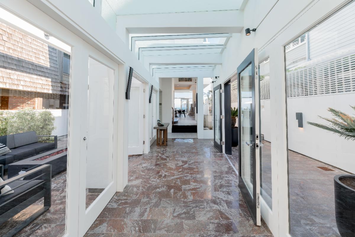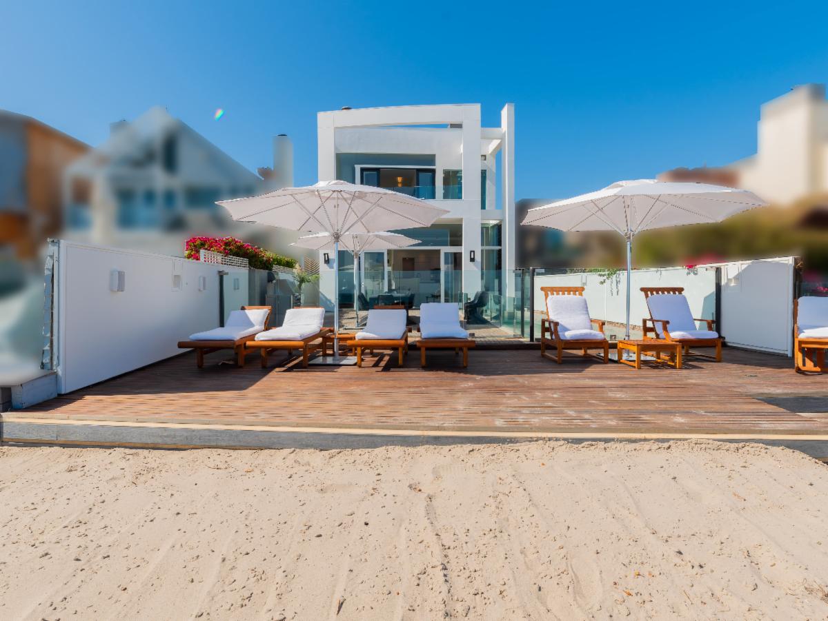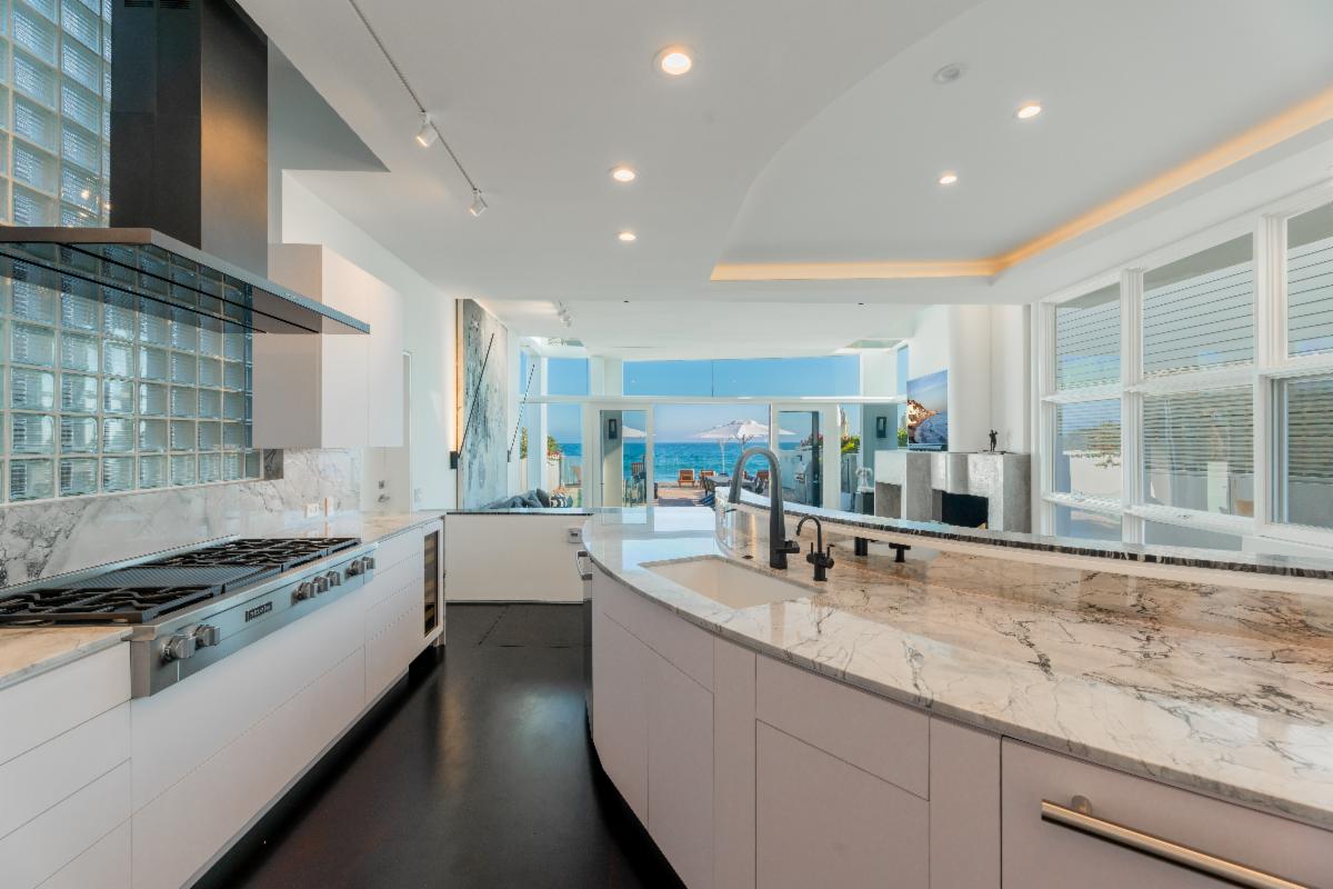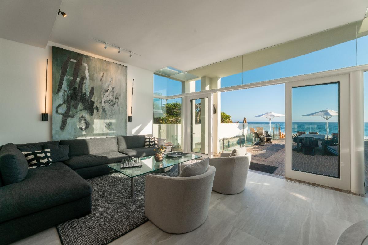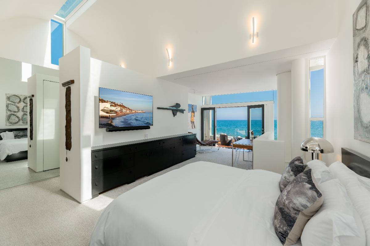 Located on the deepest part of sandy Malibu Colony beach, this stunning, newly remodeled architectural residence evokes the essence of Malibu beach sophistication. Gated for privacy, one enters into a fully landscaped courtyard where they are greeted by a modern water feature which leads to a large glass and beam enclosed entry. The impeccably furnished dining and living areas are as inviting as they are inspiring with soaring ceilings, recessed cove lighting, retractable buffets, significant art walls, contemporary fireplace and an ocean side wall of glass. Show off your culinary skills in style while watching the waves break in this newly completed entertainer's kitchen, which showcases gorgeous stone finishes, Miele appliances and touch-open cabinetry for that extra touch of class. The comfortable den includes a chic gallery wall of photography and display shelves for your collections. A private stairway takes you past the office alcove to the ocean view master suite and bath equipped with a glass privacy partition, skylights that allow you to star gaze from the bed, as well as a sitting area and oceanfront patio. There are three additional en-suite bedrooms and a detached studio perfect for live-in staff or visiting friends. There is an internal courtyard opposite the entry for casual conversation over a fire pit. The spacious beachfront patio with pool, spa, lounging and dining areas is the dream location for entertaining friends or a peaceful retreat for relaxing. Offered for sale at $34,500,000. Summer Monthly rental rate is $195,000. Winter monthly rental rate is $120,000. The height of luxury in the heart of Malibu's ‘Gold Coast’ awaits! |