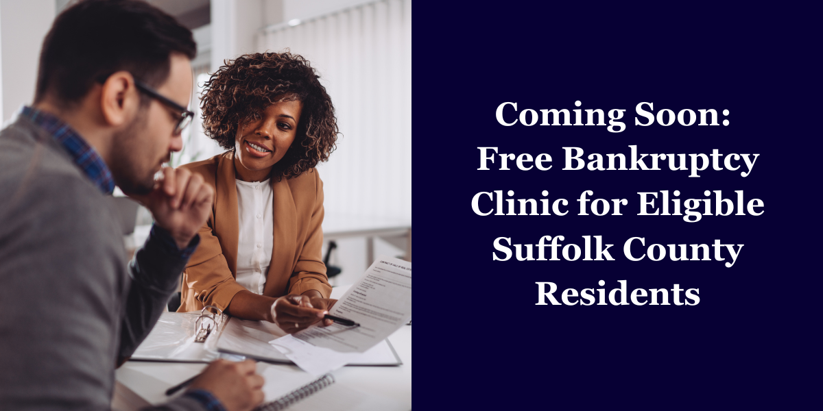 Nassau Suffolk Law Services Suffolk is holding a Free Bankruptcy Clinic for eligible low-income Suffolk County residents at our Islandia office this summer.