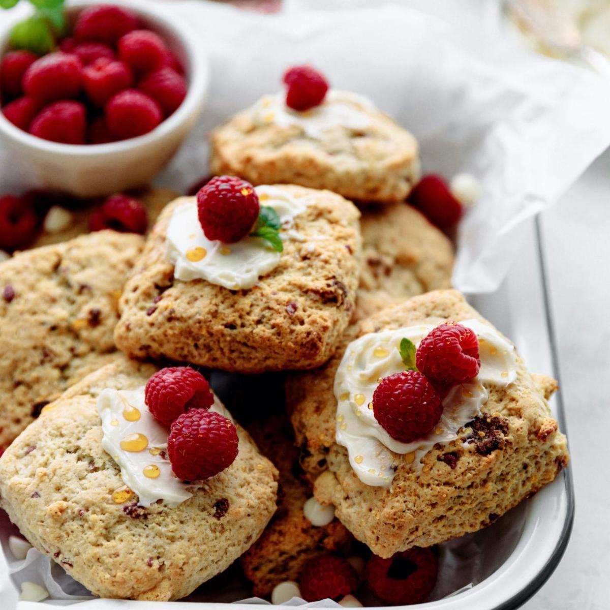 Sconehenge bakes some of our favorite English Tea Scones right here in Berkeley. Their Blueberry Scones are delicious. And, if you have a litte more time in the morning, whip up a package of Sticky Fingers Bakeries Raspberry Scone Mix. They are so fast and simple to prepare!
