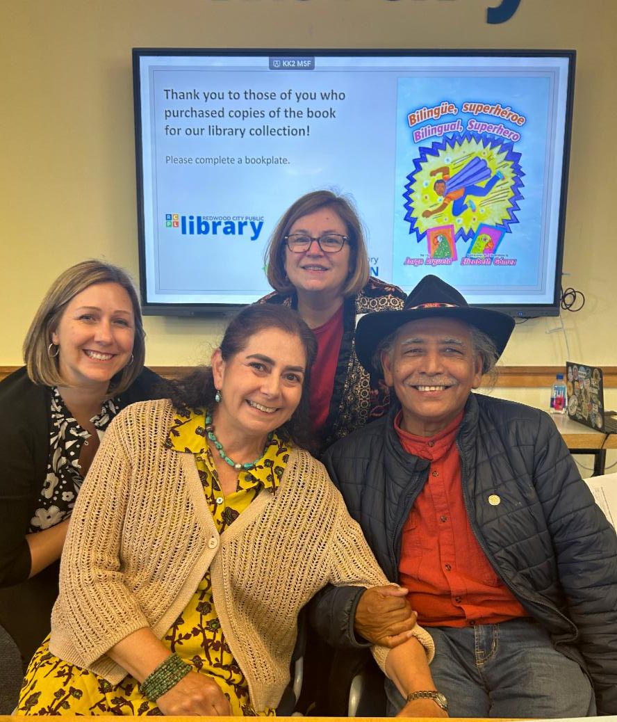 On May 20, Redwood City Library Foundation hosted a Spring fundraising event where author and illustrator pair Jorge Tetl Argueta and Elizabeth Gómez shared the process of collaborating on their book Bilingüe, Superhéroe / Bilingual, Superhero. Jorge Tetl Argueta is a celebrated Salvadoran poet and writer, whose bilingual children's books have received numerous awards. Elizabeth Gómez is a Redwood City based artist and children’s book illustrator, who also creates community murals (such as the mural in the Downtown Library)! Discussion was facilitated by Interim Library Director Sarah LaTorra.
