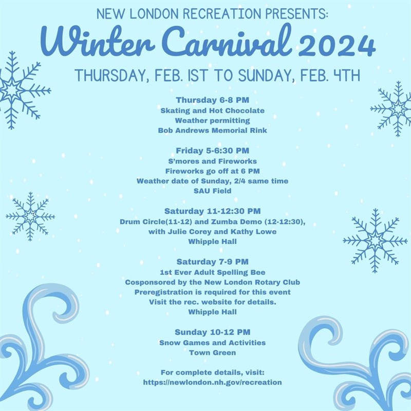 Whether or not Phil casts a shadow Friday morning, New London is the place to be that evening. CFA’s First Friday Gallery Stroll in 2024 extends a warm invitation to visit five local Micro Gallery Openings. and… it’s also the first night of the Annual Winter Carnival! | |