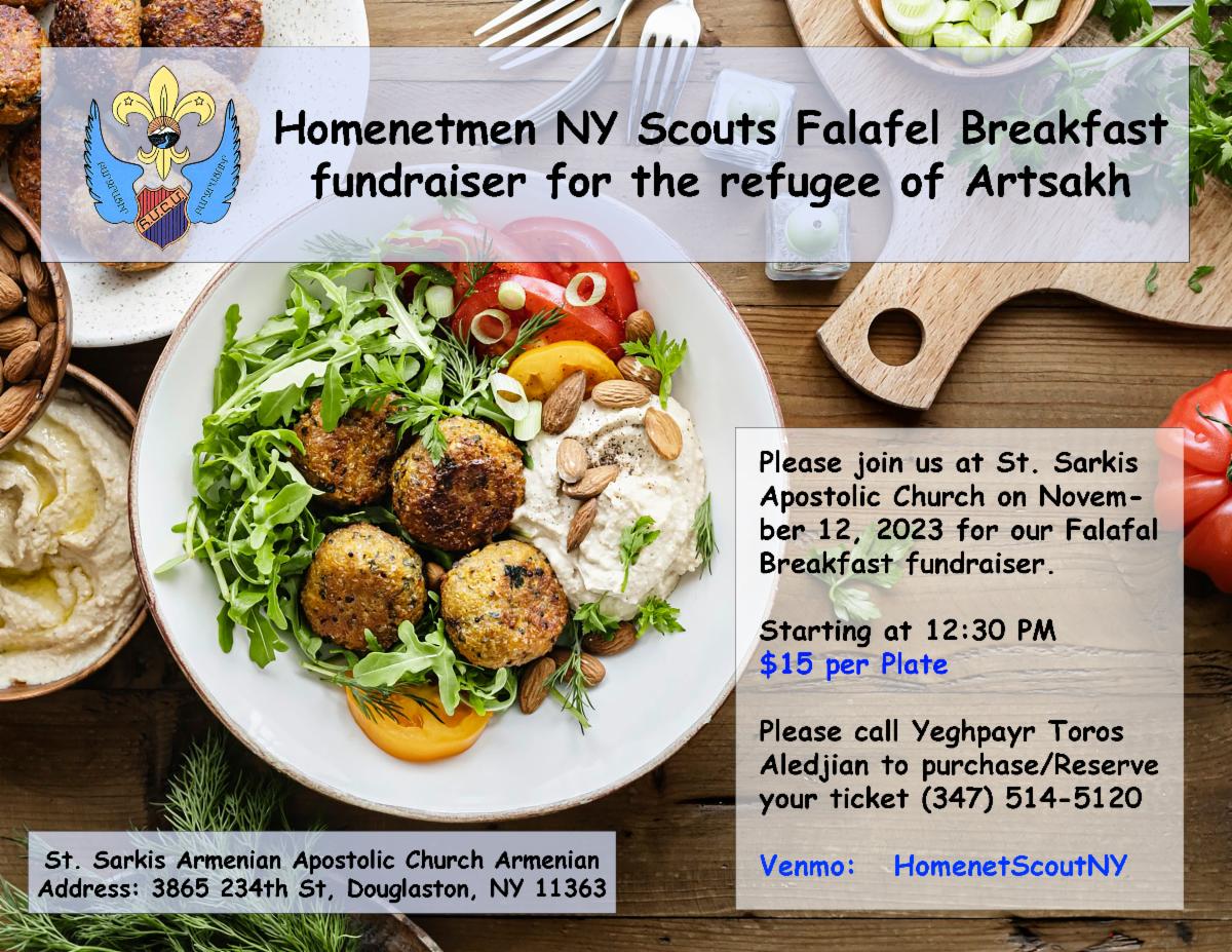 -The Homenetmen of NY Scouts Falafel luncheon and The Ladies Guild fellowship hour will be held in the Main Hall and is hosted by: