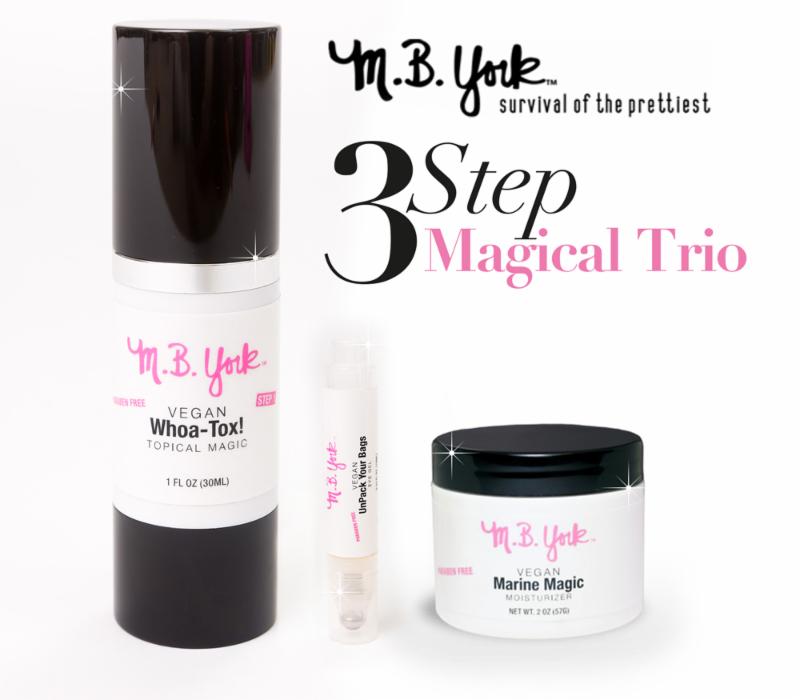 My 3 Step Magical Trio includes WHOA-TOX Topical Magic, Marine Magic Moisturizer, and Unpack Your BagsEyegel!