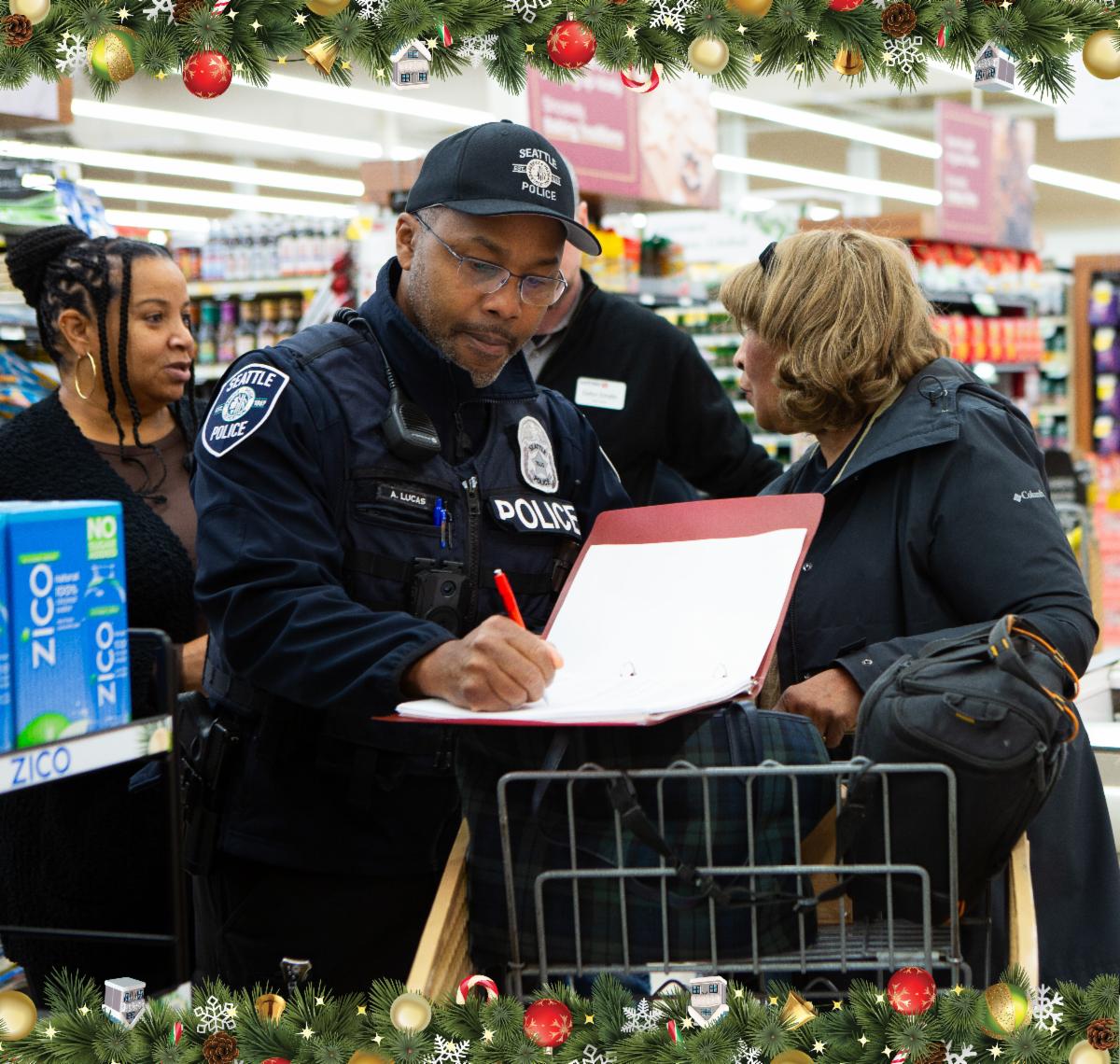 On Monday, November 20, we were honored to join Safeway in welcoming members of the Central Area Senior Center to the Rainier Valley Safeway store for a holiday grocery shopping spree with SPD.