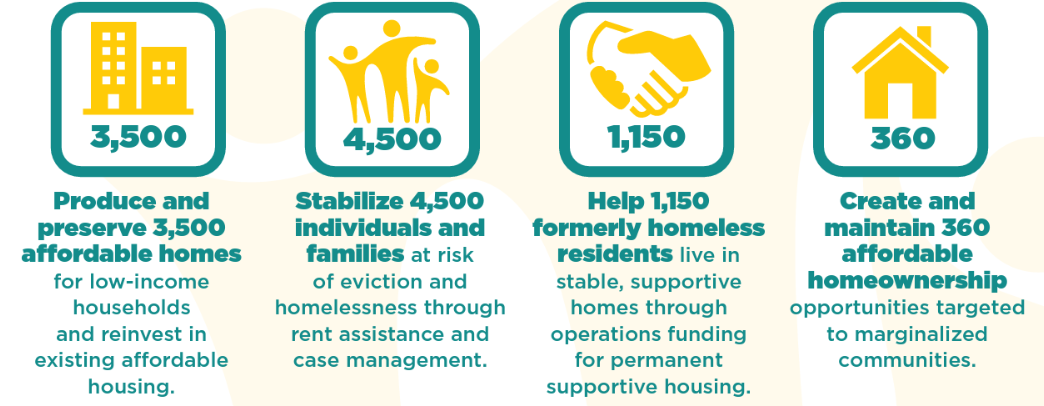 - Produce and preserve 3,516 affordable apartments