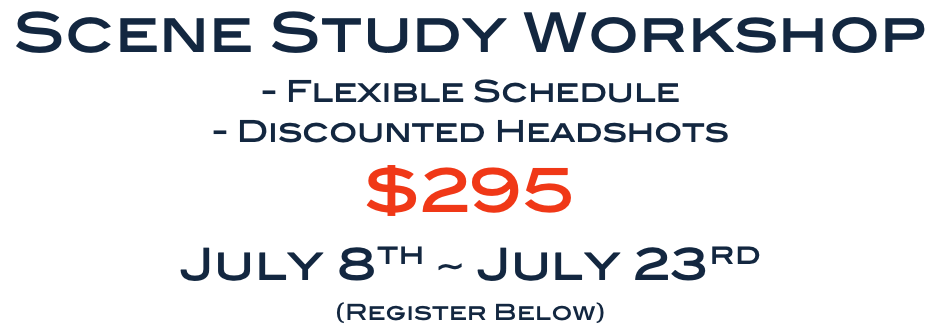 Scene Work begins on Thursday, July 11th. As usual, three-hour slots. You decide if you want to do two or three scenes.