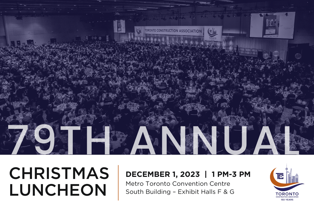 Tickets for our 79th Annual Christmas Luncheon are selling fast. Don't miss out on one of the biggest construction networking events that will be held on December 1, 2023, at the Metro Toronto Convention Centre, South Building.