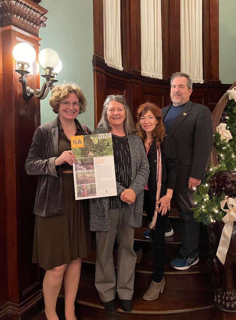 Dr. Donna Coffey Little (left) and Pinelog Preservation Society members Lisa Lipscomb, Joanna Drexler, and Scott Drexler at the reception for the Places in Peril designation.