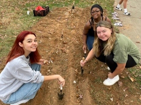 Reinhardt Students and staff participated in planting over five hundred daffodils on campus today. It was part of an annual partnership Campus Ministries has with the Daffodil Project.