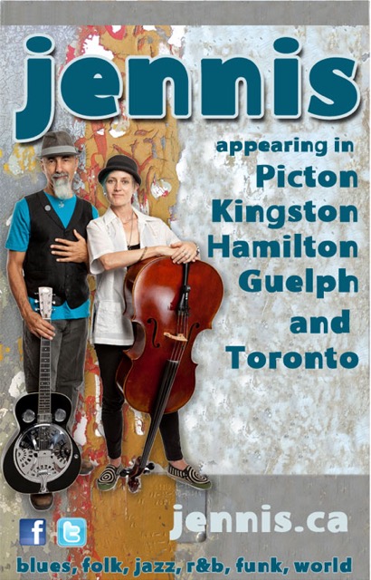 JENNIS IS MY LATEST PROJECT, WITH MY MUSICAL PARTNER, JEN GILLMOR. WE HAVE A BUSY MONTH LINED UP, WITH GIGS IN PICTON, KINGSTON, HAMILTON AND GUELPH. WE'D LOVE TO SEE YOU AT ONE OF THESE EVENTS. HERE ARE THE DEETS: