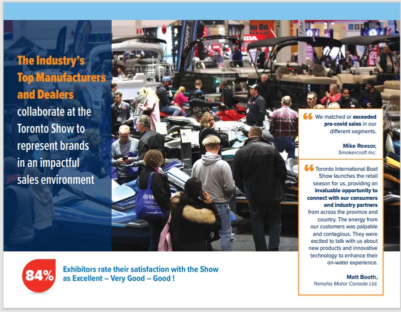 As a reminder, in March a Post Show Survey was underway for Exhibitors. We received a very high response rate. Thank you to the 350+ exhibiting companies that participated. 90% of the boat and engine spaces responded.