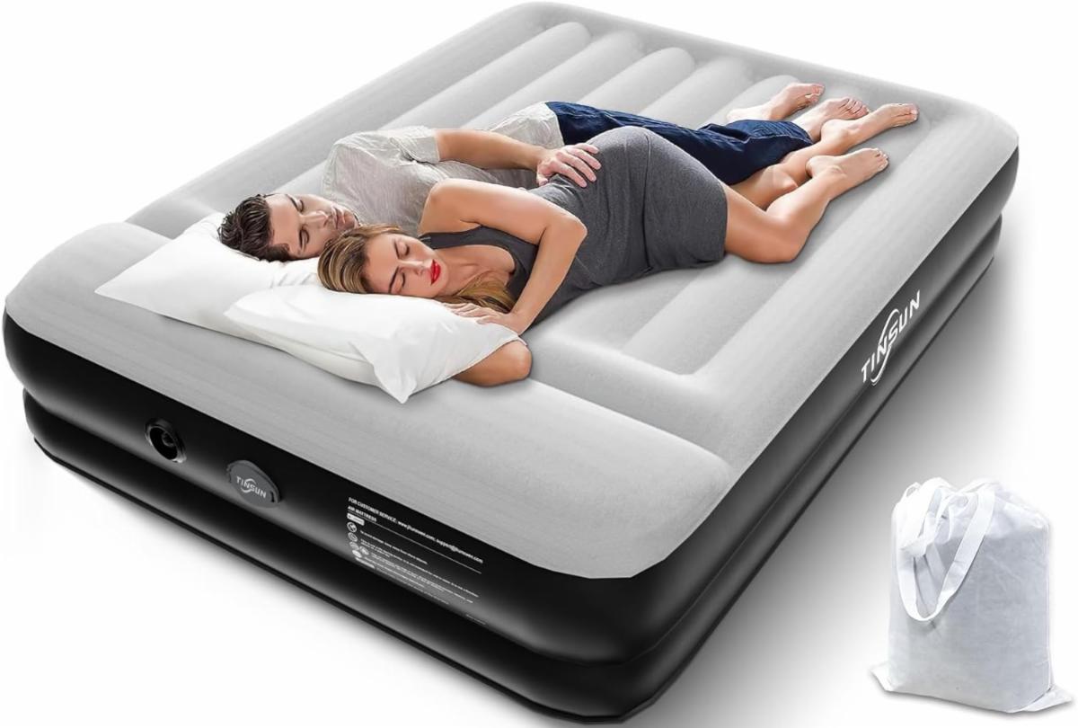 TINSUN Queen Air Mattress with Built-in Pump, 16'' Durable Air Bed for Camping, Home&Guests, Fast&Easy Inflation/Deflation Airbed