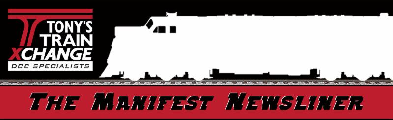 Welcome to Volume 12 of The Manifest Newsliner, which includes a mix of product information, model railroading and DCC tips, and new product announcements. The Newsliner will keep you apprised of pre-order deadlines, expected delivery dates, and provide useful information about DCC components and their correct operation. It will also include track layout design and wiring, and many more Tony's exclusive model railroading tips. If you do not wish to receive this newsletter, please click on the SafeUnsubscribe link at the bottom of the page.