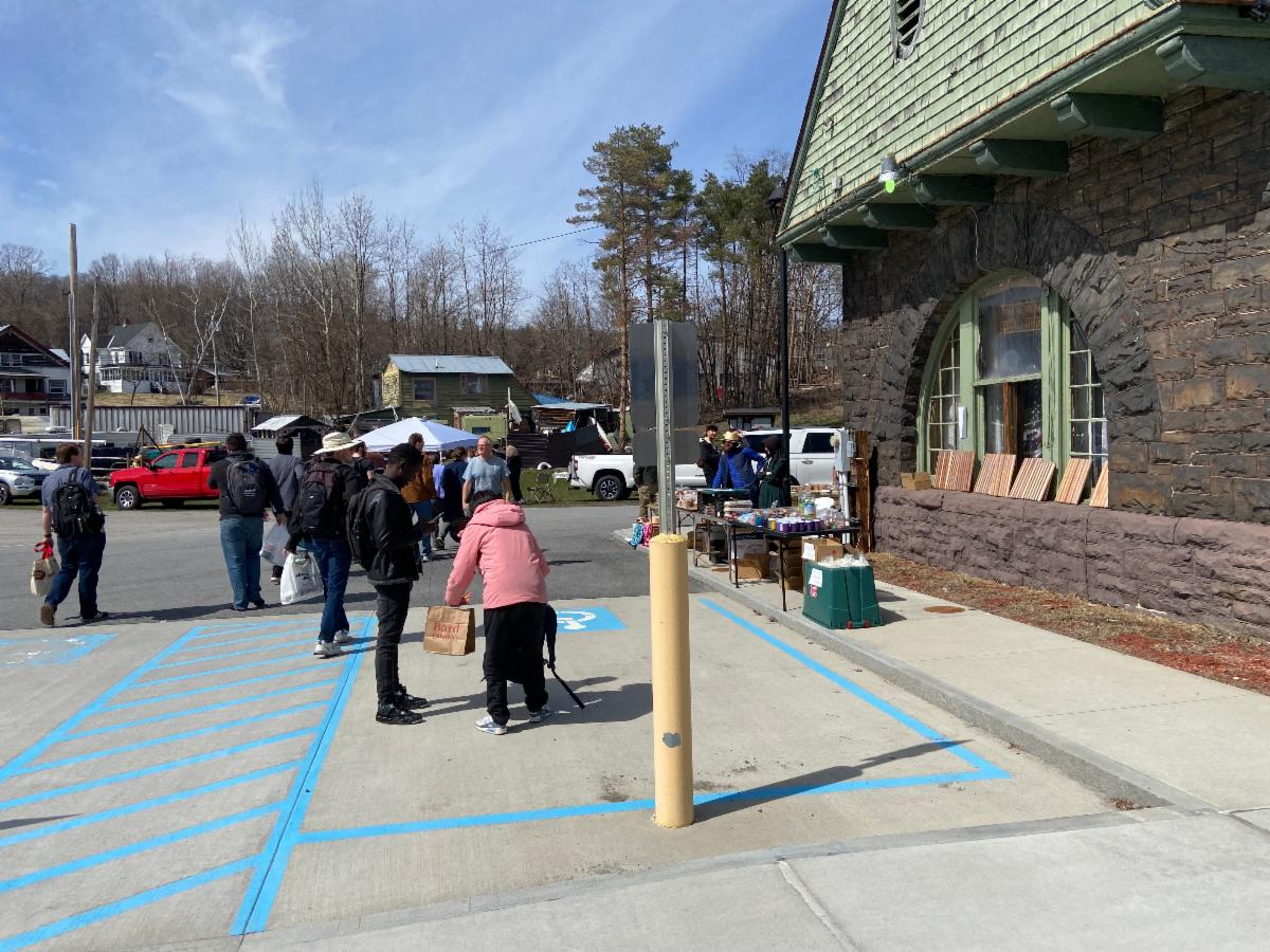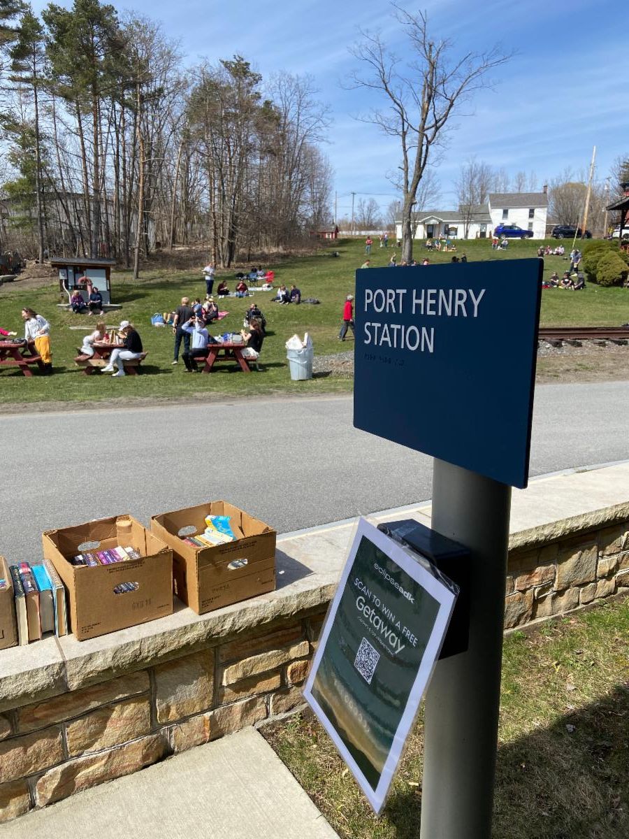 The train took a while to unload at Port Henry. The was probably the biggest event there in a long time. Local people had set up tables with food and other goods in anticipation. There was a big hill behind the train station and people started spreading their blankets all the way up the hill.