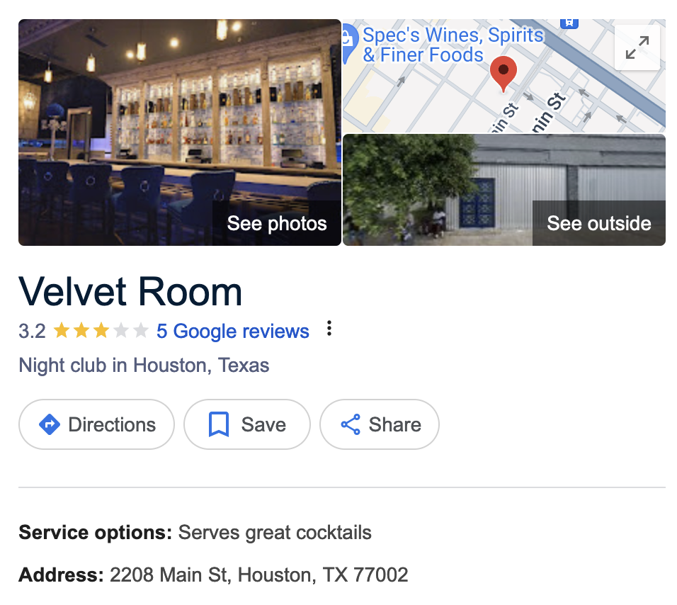 VELVET ROOM: 2208 MAIN STREET HOUSTON TX