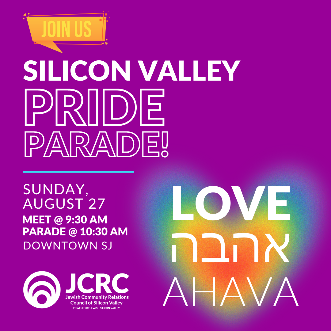 Join Temple Emanu-El and other Jewish Organizations in the Silicon Valley Pride parade! Help us show the local LGBTQIA+ community that Jews stand for love, understanding, and equality. #JSV🏳️🌈