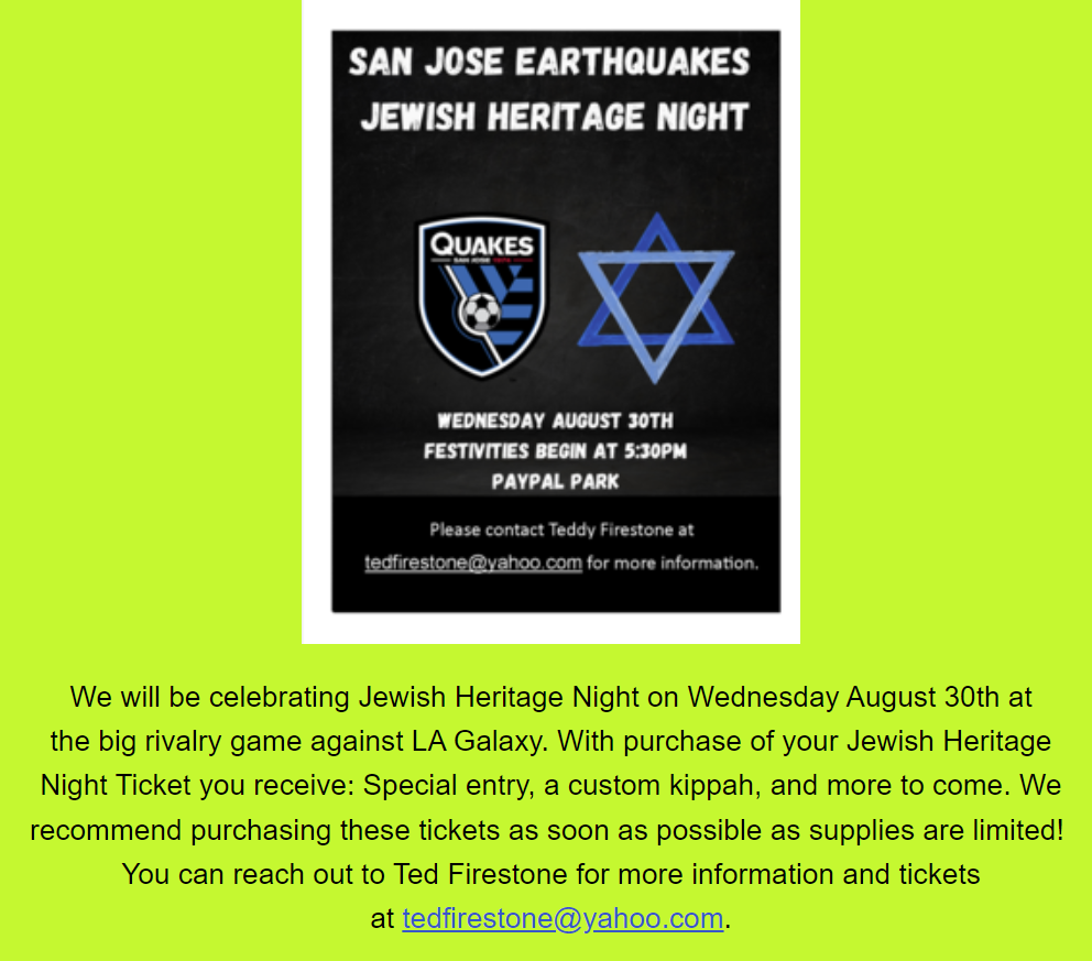Jewish Heritage Night at the San Jose Earthquakes Game | |
