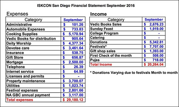 The temple monthly financial statement is posted here every month. Look for it on the 2nd Sunday following the end of the month, at this link: Financial Report