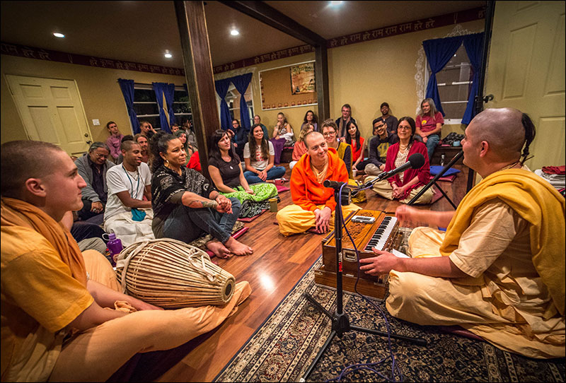 Bhajans, pravacana, mantra meditation, and a prasadam feast