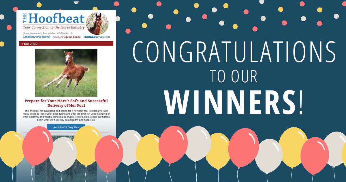 We are pleased to present the winners of our HOOFBEAT ENEWSLETTER CONTEST, generously sponsored by Eaglewood Equestrian Supplies. This contest ran for six weeks in April and May and attracted a deluge of entries.