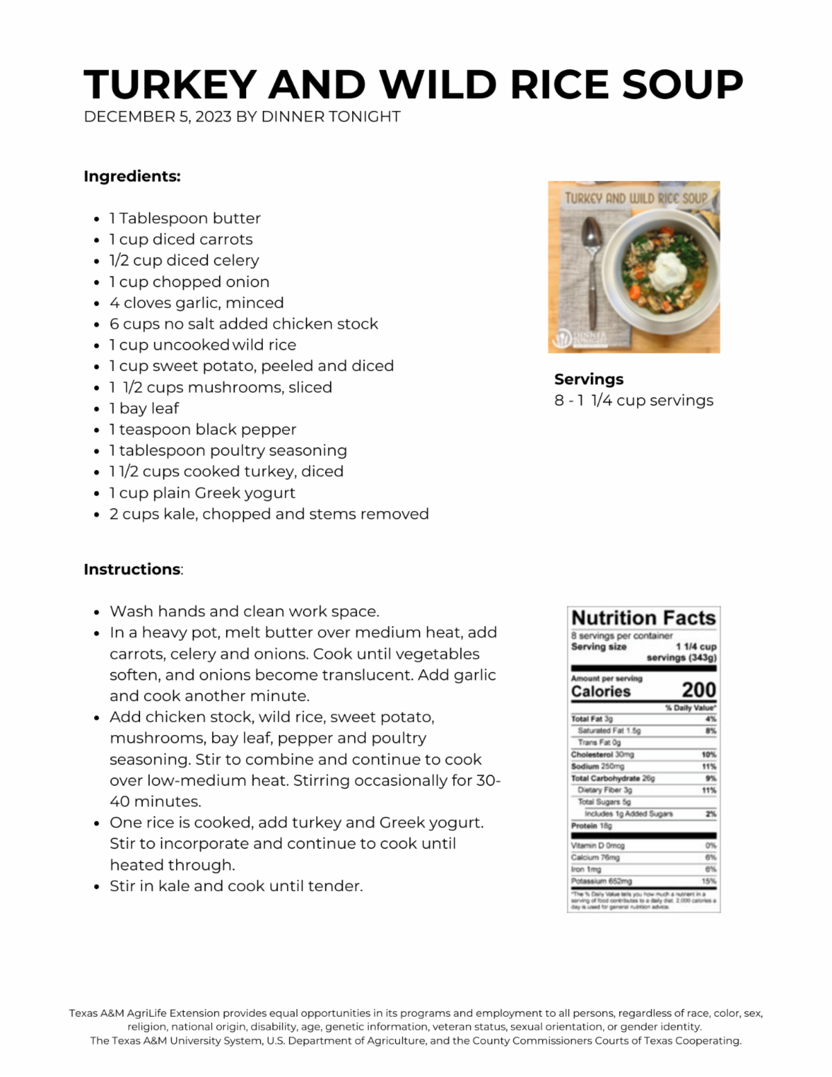 Get creative and use that extra turkey in the fridge before you have to throw it away! This Turkey and Wild Rice Soup is the perfect way to reuse your turkey leftovers. | |